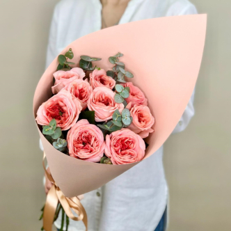 Стоимость букета зависит от количества роз, которое регулируется в меню конструктора с помощью "+/-". При этом, чем больше вы роз заказываете, тем ниже цена одной розы в букете.