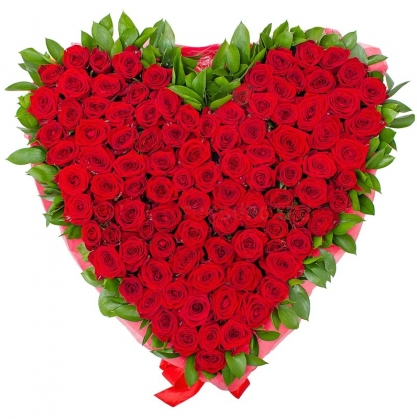 Композиция из 101 розы в виде сердца с доставкой в Клине