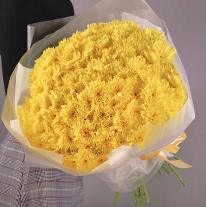 Букет из 15 желтых кустовых хризантем