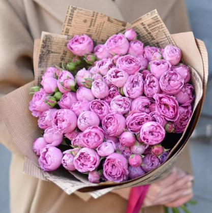 Предлагаем вам букет из кустовых пионовидных роз "Бомбастик Баблс" фиолетового цвета. Эти розы имеют обширные кусты и множество пышных бутонов, которые будут создавать магический и завораживающий эффект. Фиолетовый цвет этих роз придаст букету глубокость и интригу, добавляя к нему нотку элегантности и изысканности.