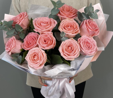 Мы предлагаем розовые розы в различных форматах: в стильной бумаге, под ленту или в сборных букетах с добавлением диантусов и эвкалипта. Наши флористы помогут подобрать нужный подтон, чтобы композиция точно соответствовала вашему настроению и поводу праздника.