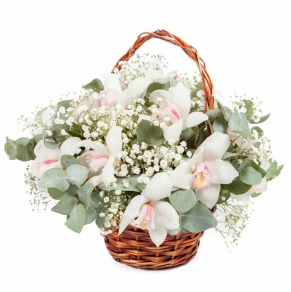 Корзина белых орхидей "Воздушный поцелуй" | Купить в Клине
